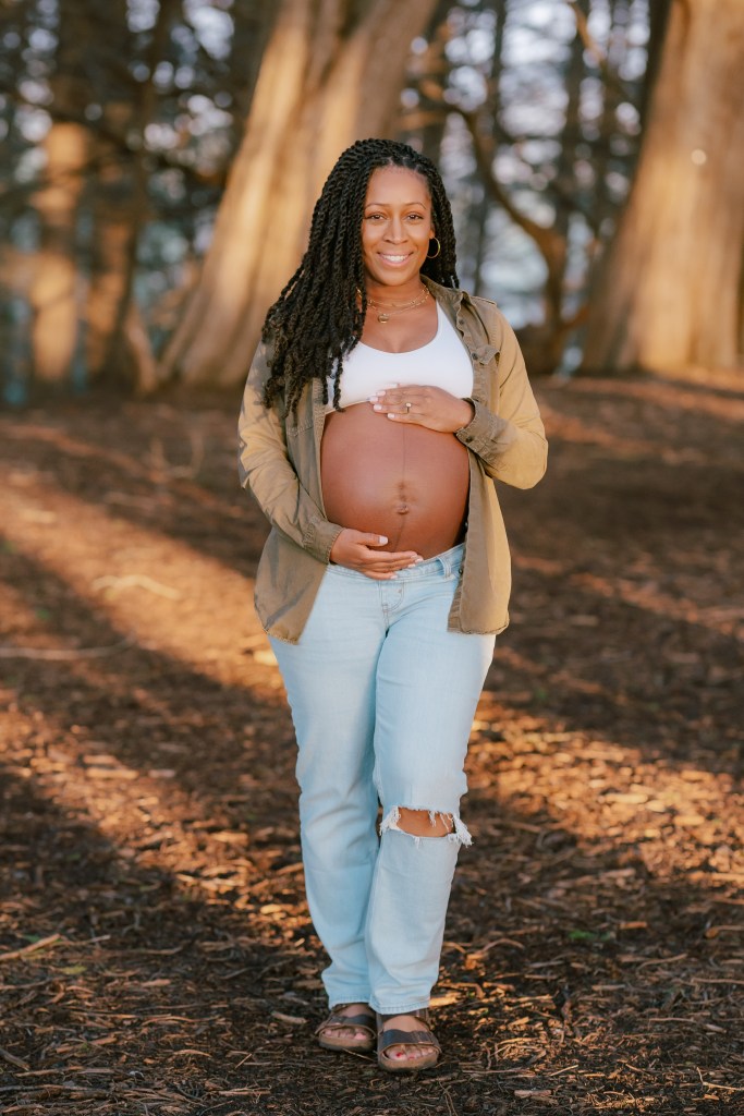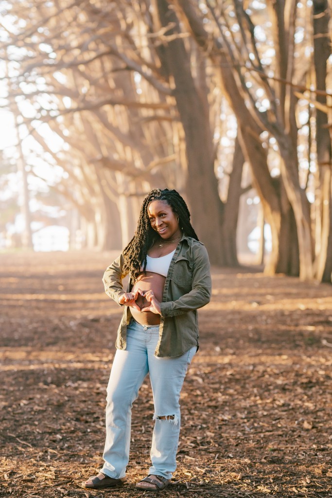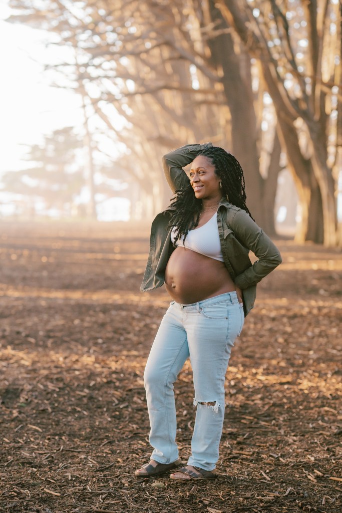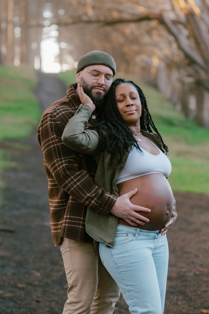 Sky wore a casual yet chic outfit—a pair of relaxed jeans and an open shirt that beautifully showcased her baby bump. Every pose was carefully considered to highlight her natural glow while ensuring she felt comfortable and confident.
