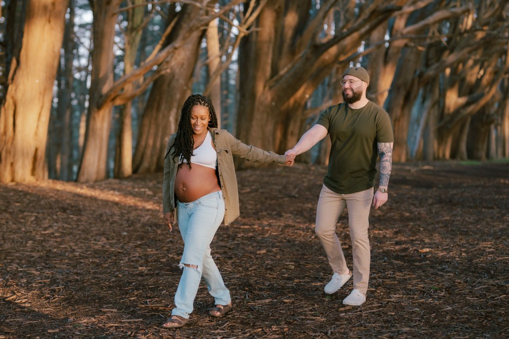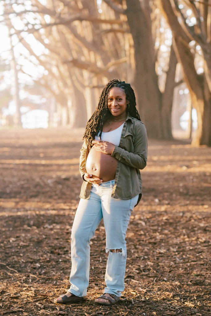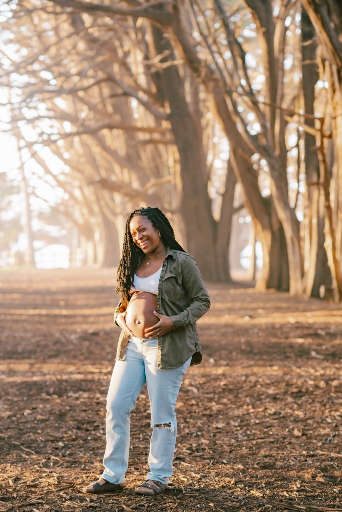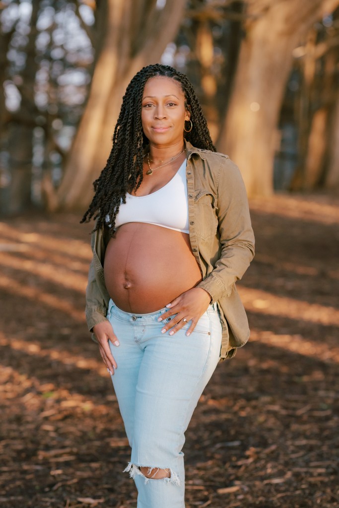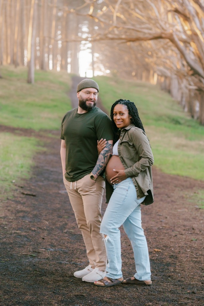 Sky wore a casual yet chic outfit—a pair of relaxed jeans and an open shirt that beautifully showcased her baby bump. Every pose was carefully considered to highlight her natural glow while ensuring she felt comfortable and confident.