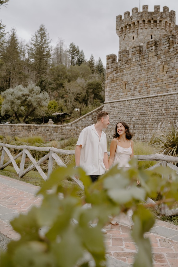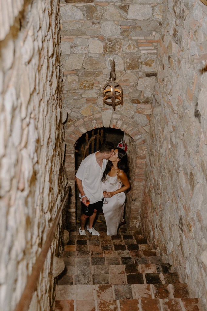 The beautiful stone archways, historic walls, and vineyard surroundings made the perfect backdrop to celebrate their engagement.