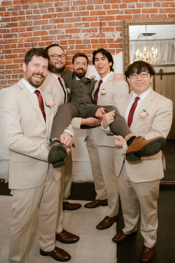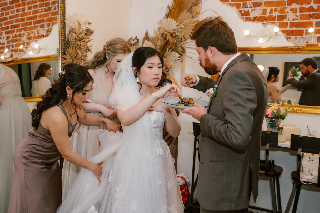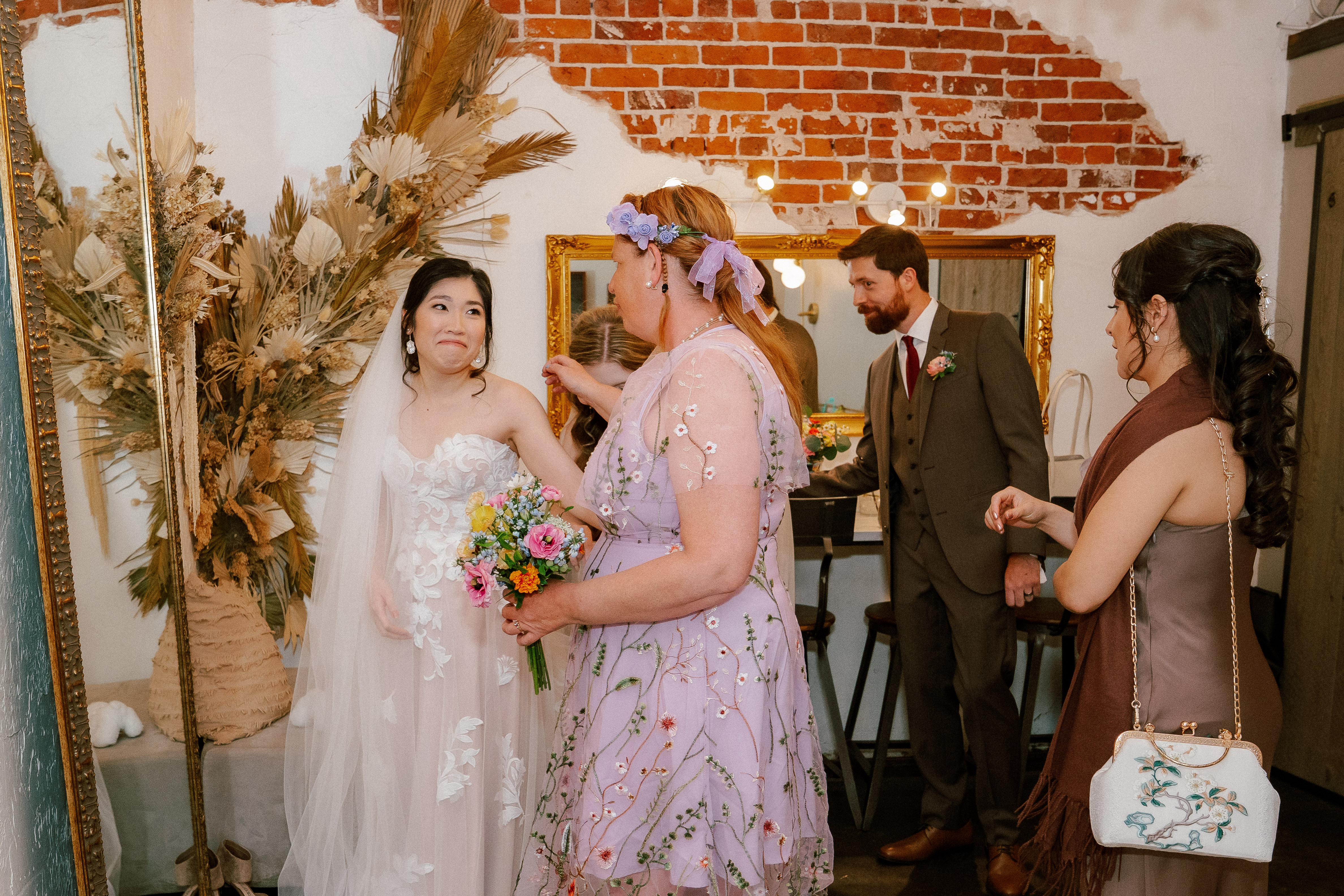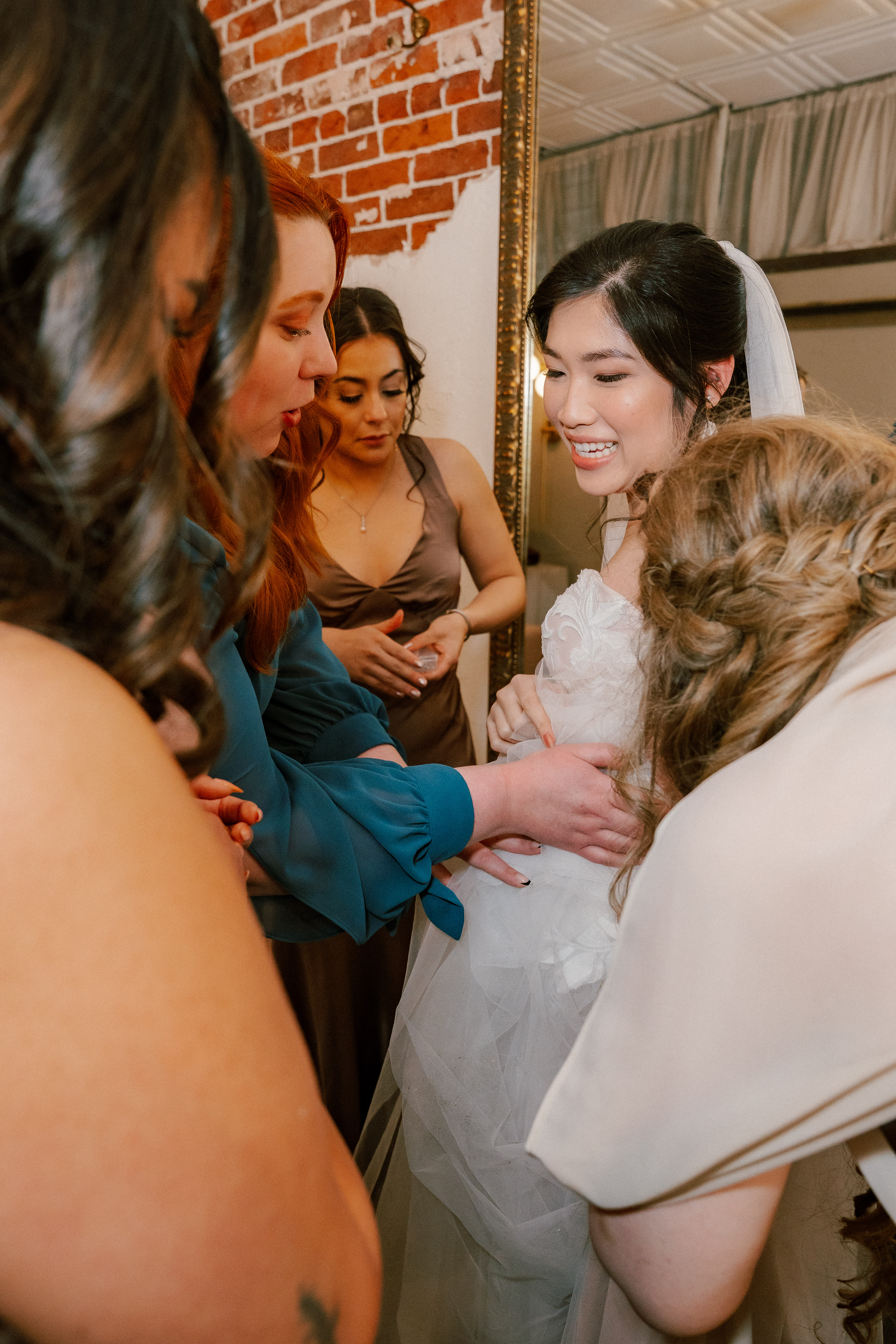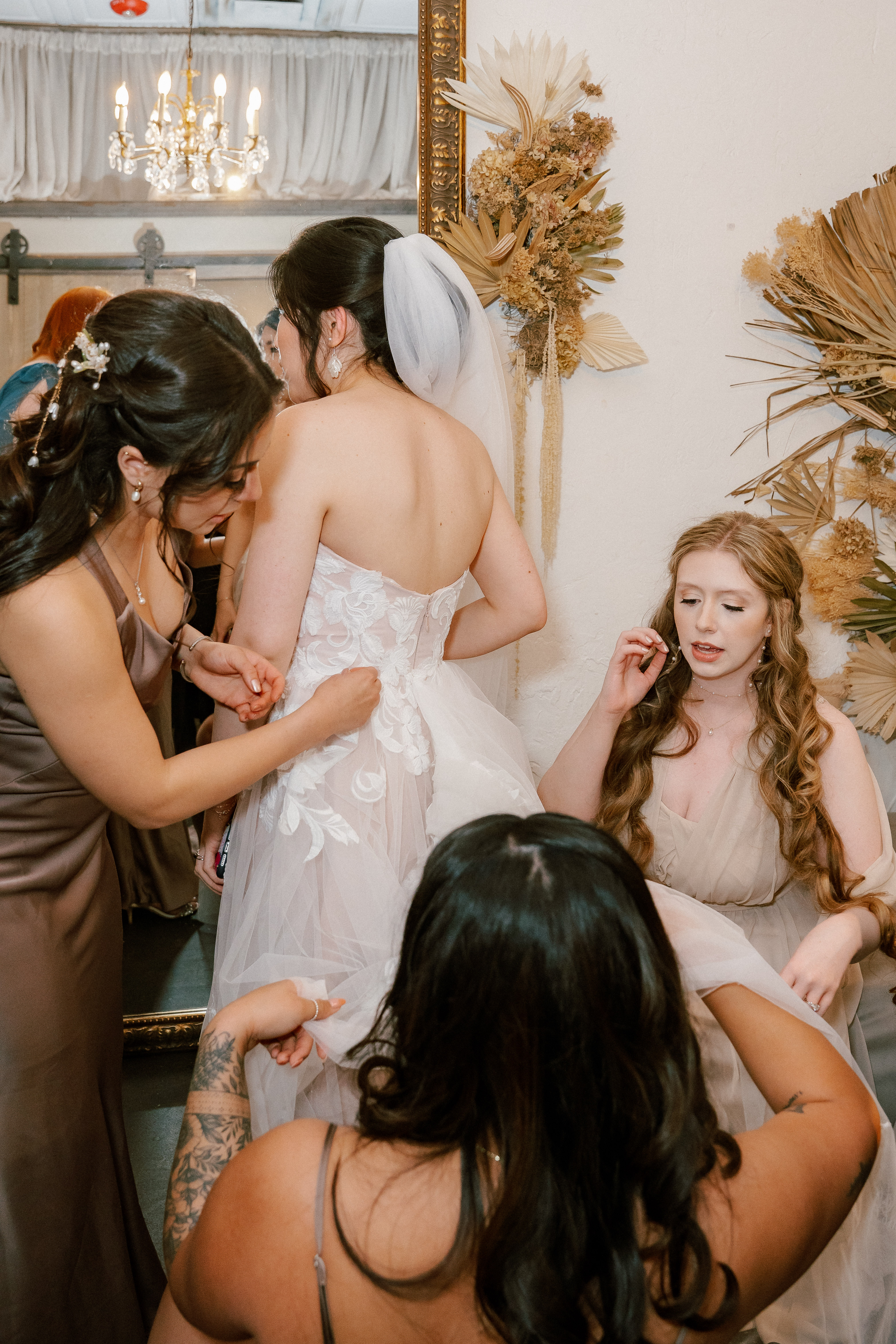 Kayla and Kolten’s early spring wedding day was a mix of cold winds and bright sunshine outside, but inside the venue, it felt cozy and inviting. The sunlight filtered beautifully through the large windows, filling the space with a soft natural glow throughout the day.