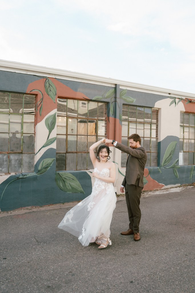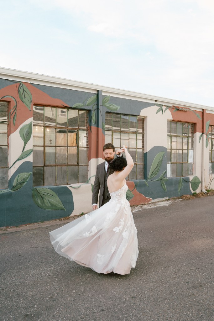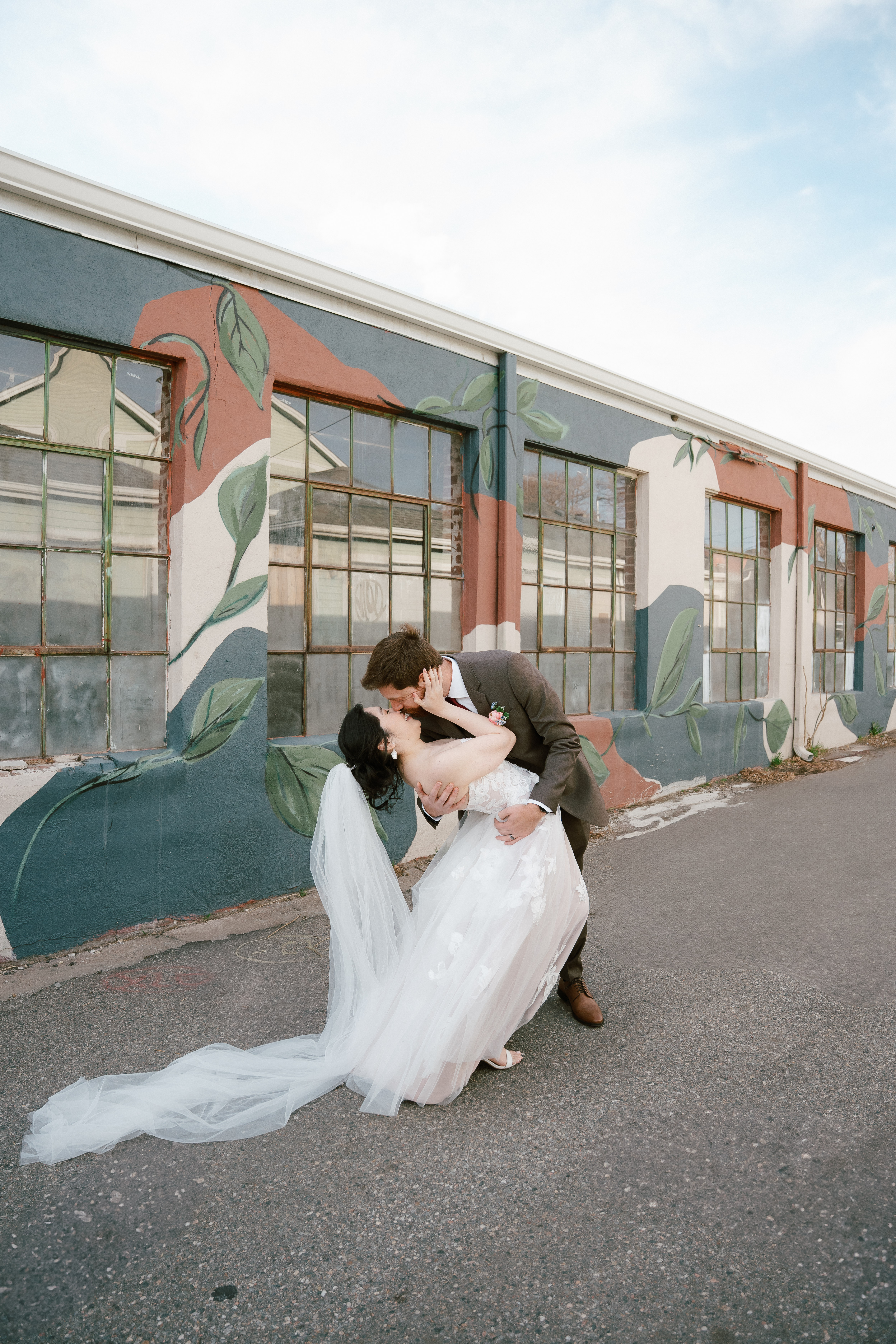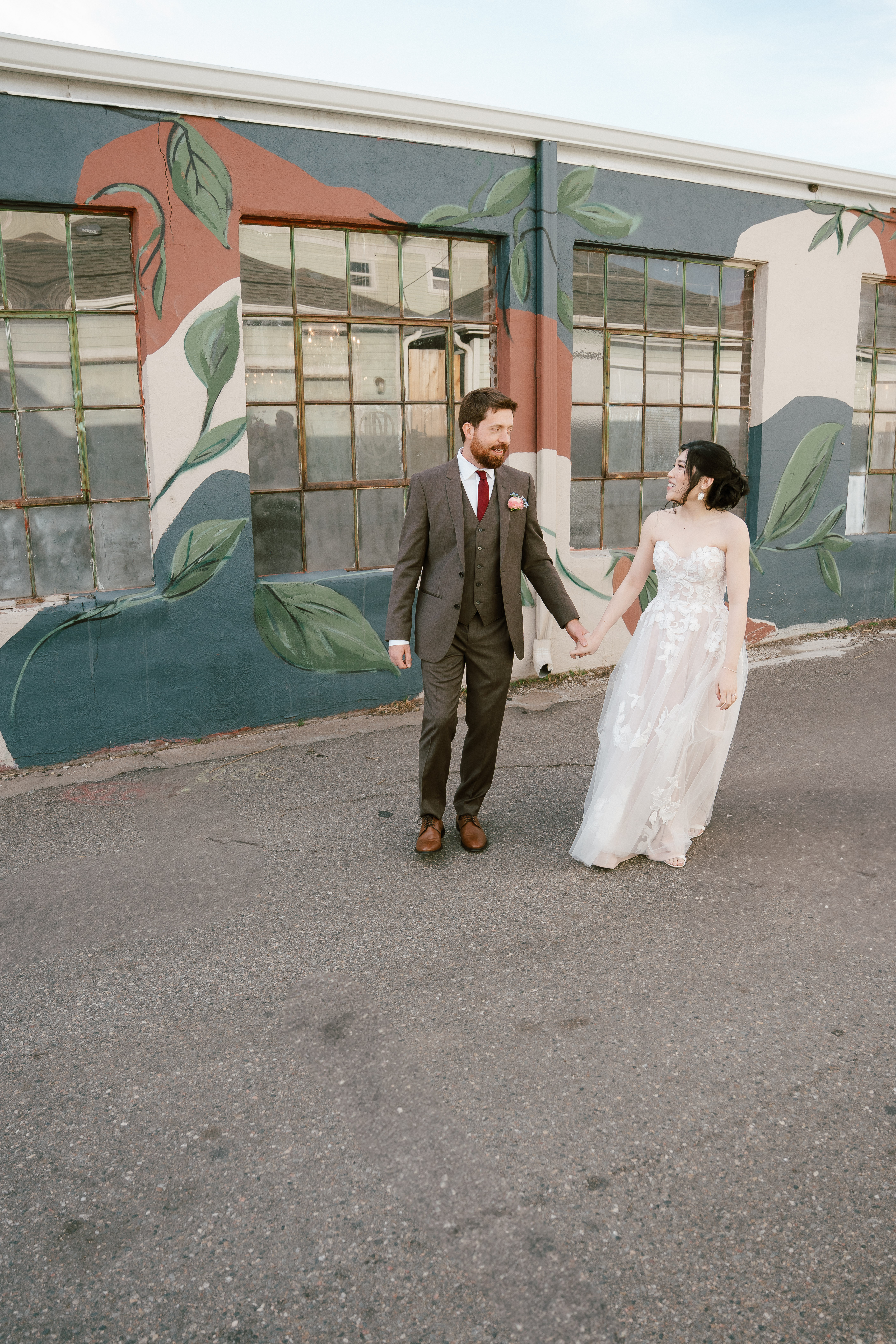 Right outside the building was a stunning mural that added so much character and color to their photos. The vibrant artwork, combined with the soft light, created such a unique and beautiful backdrop for their portraits.
