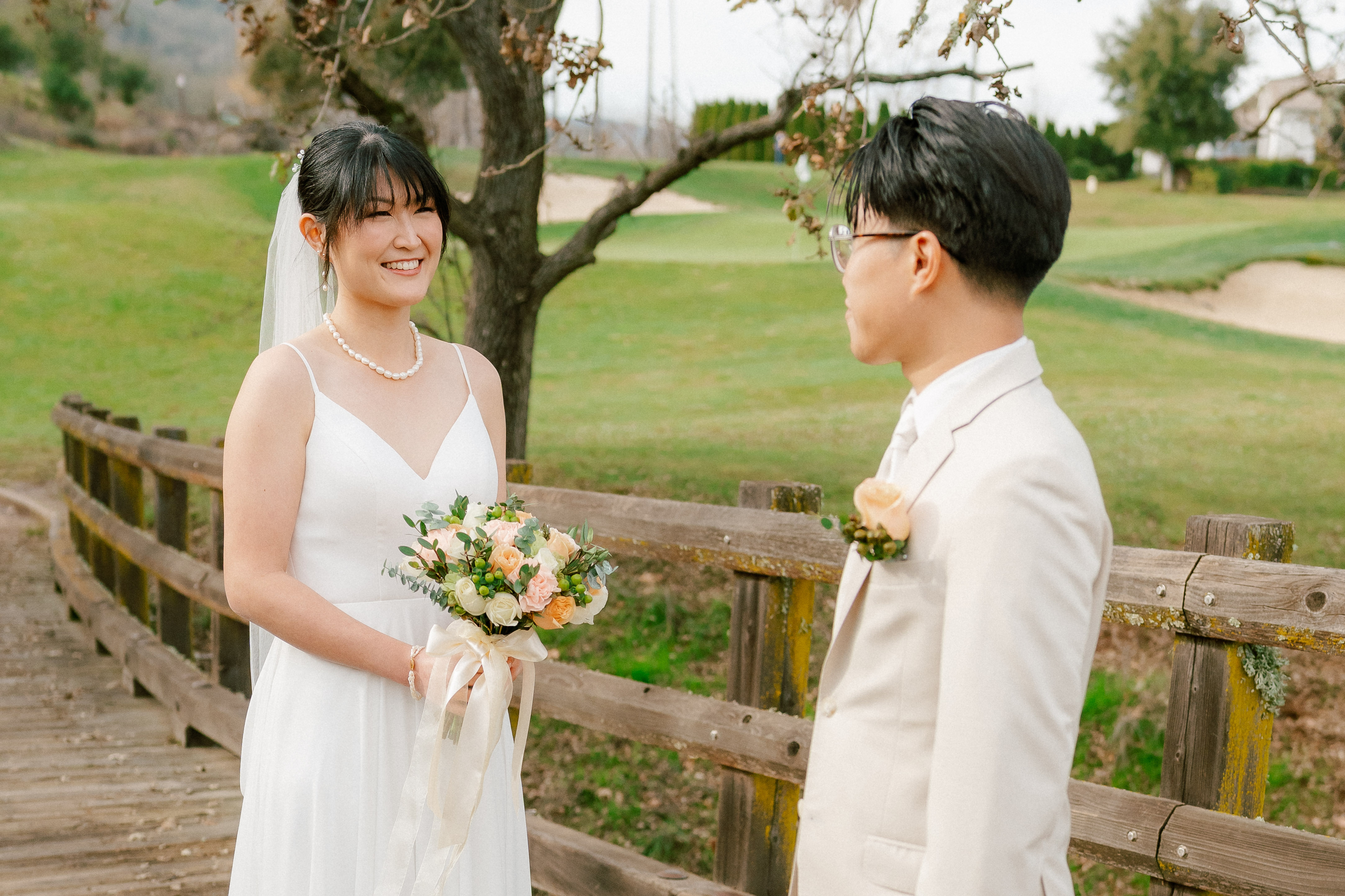 One of my favorite parts of the day was their first look at the bridge area at Eagle Ridge by Wedgewood Weddings. The setting was just perfect. It felt quiet, intimate, and gave them a chance to really take in the moment together before everything officially started.
